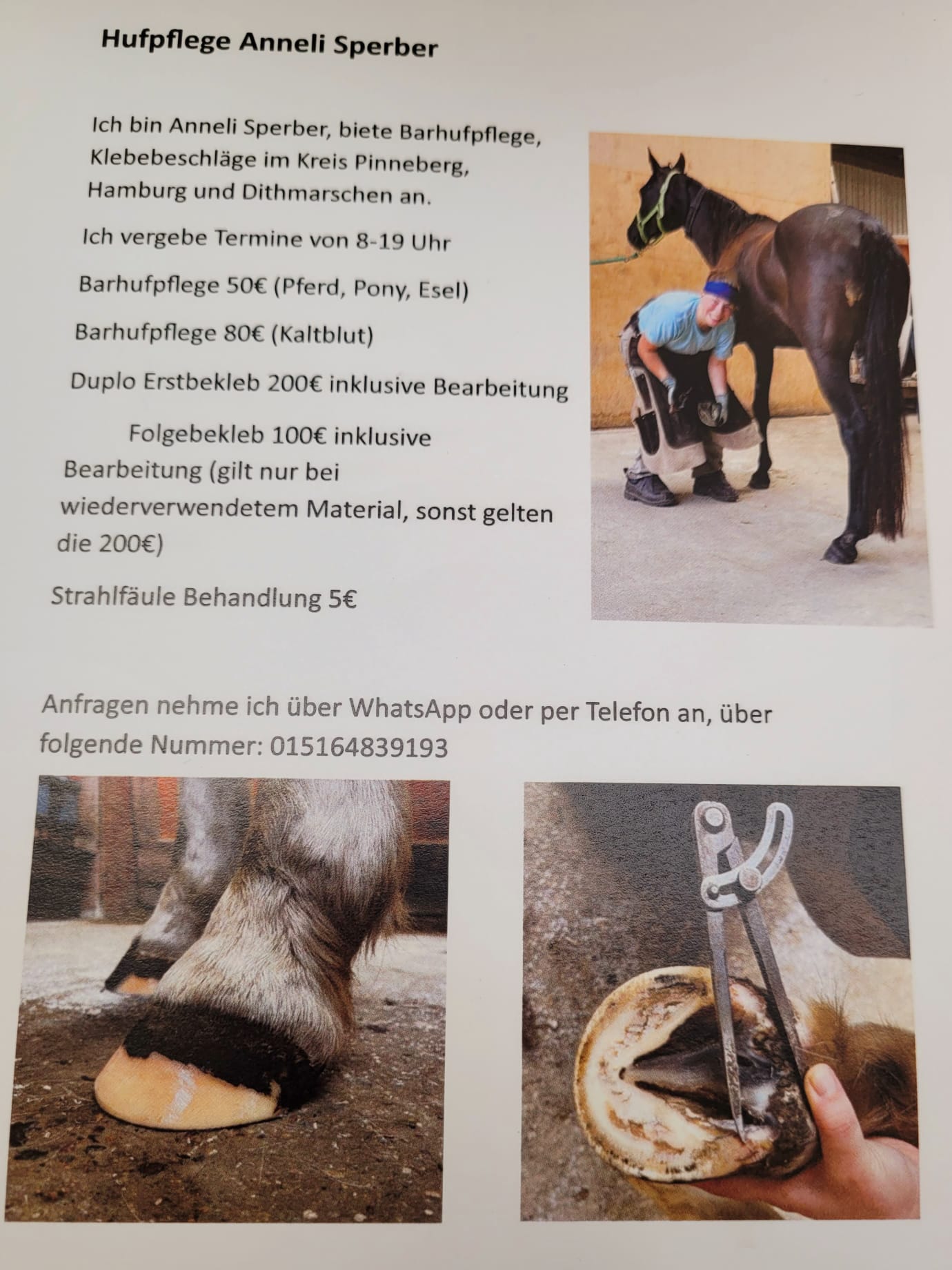 Wir freuen uns, euch unsere neue Kooperationspartnerin Hufbearbeitung Anneli Sperber vorstellen zu dürfen.